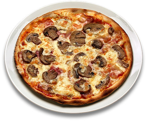 Bacon, Base de 4 quesos, Champiñones, Mozzarella, Orégano, Tomate.